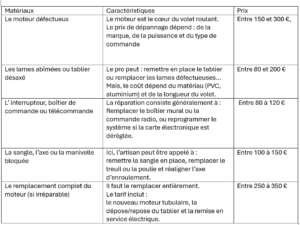 Quel est le tarif de réparation d’un volet roulant électrique ?
